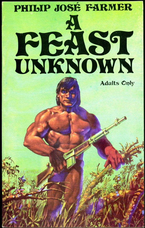 Much later I would learn that Corben had painted artwork for Farmer’s Feast, and I could not imagine a more appropriate choice of artist to depict the over-the-top primal eroticism and violence of that novel. When I finally found a copy of the book (its outlaw status further enhanced by the outlandish name of the publisher), I was not disappointed. The only time the anatomically correct qualities of the main characters was artfully muted was on the cover, where a large rifle screens Lord Grandrith’s no doubt similarly proportioned phallus.
