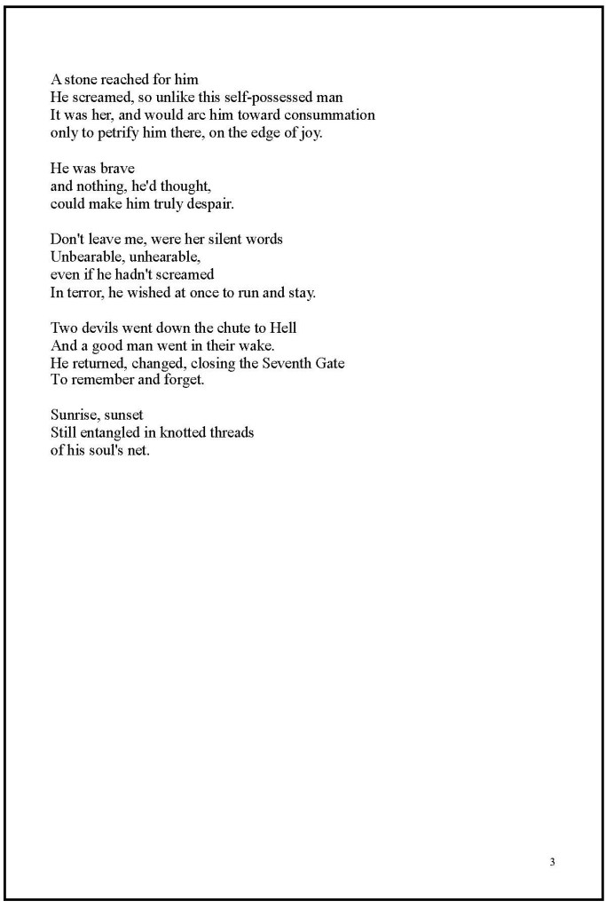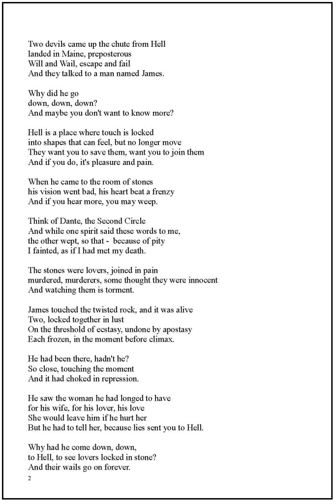Comment from poet Maxine Vega: A strange and fascinating story, it set off a whole chain of disturbing emotions in me…to wit, about how broken even the most outwardly-together among us may be beneath the veneer, and what Hell might look like to someone who struggles with intimacy. That the original story references the Rubáiyát of Omar Khayyám also got my immediate attention, and led me straight onward (or downward, toward the infernal regions) into Dante. I picked the photo image R. Paul used to decorate the poem, a Rodin. Maybe, in a way, we are all locked in stone and yearning to be free from some form of Hell.