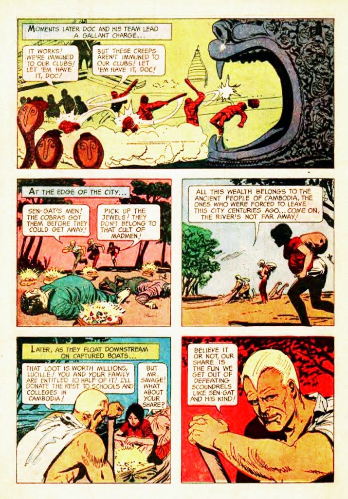 Rare to see a comic book with a James Bama cover! But of course the art was simply lifted from the painting done for the Bantam Books novel, zoomed in on the figure of Doc fighting the snake.