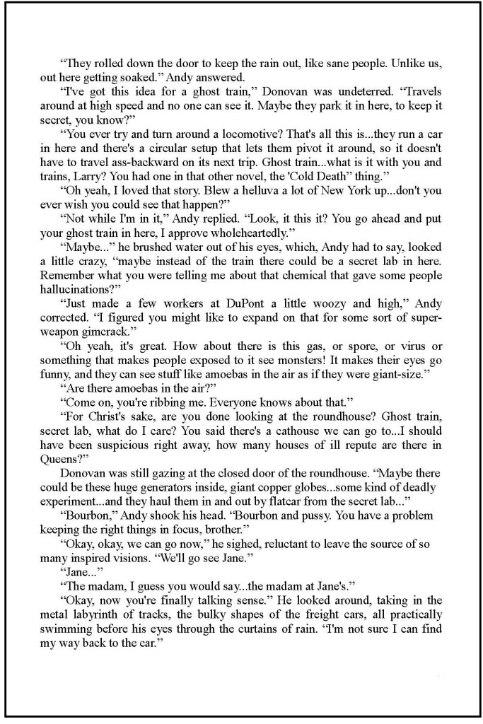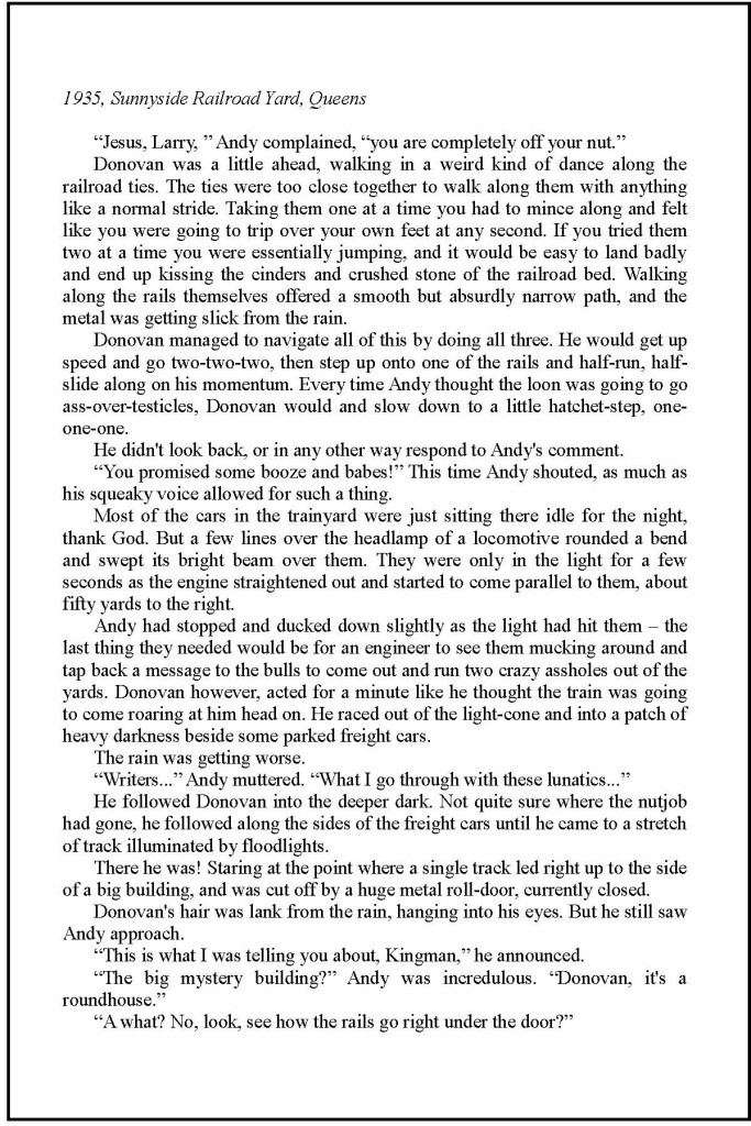 Note from Doc Talos author/contest judge R. Paul Sardanas: This tale by Brooklyn Wright, featuring the wildest of the Kenneth Robesons and a certain apelike chemist brainstorming a Doc Savage yarn one night in 1935, made me smile from its beginnings in a Queens trainyard to its ending in the company of a madam who is destined to become a pulp villainess. That’s one helluva night.
