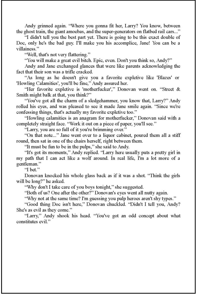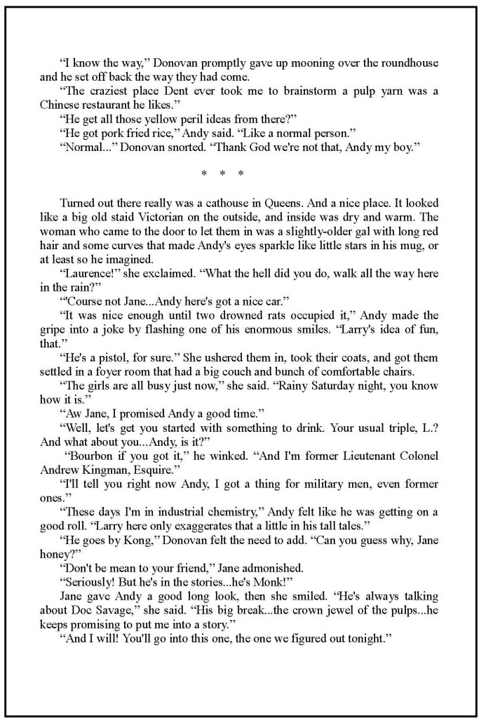 Comment from author Brooklyn Wright: For all the reverence I apply to the name of Lester Dent, Laurence Donovan was my favorite of the Kenneth Robesons. His novels were so insanely off the wall, I never knew what he would pull next. Sometimes they were terrific from cover to cover, sometimes they crashed and burned. But he really was something. Philip José Farmer, in his book Doc Savage: His Apocalyptic Life, suggested that Monk might have fed quite a few stories to the Doc authors over the years…so why not to Donovan? Another inspiration for this story is the 1985 Scorsese dark comedy film After Hours.