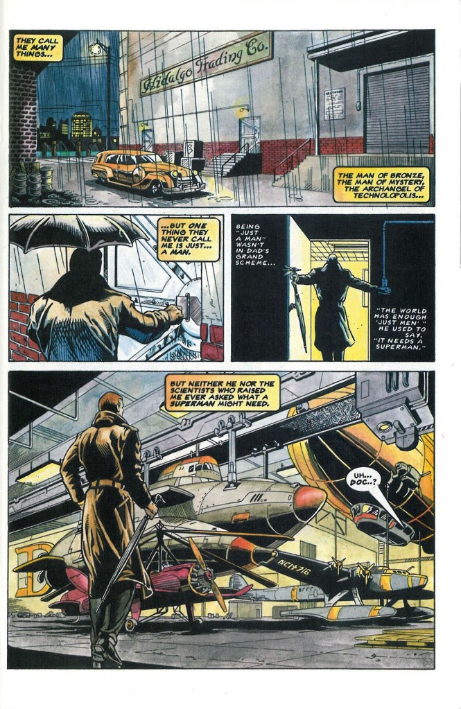 That story, written by Mark Ellis and drawn by Darryl Banks, worked to create a balance between an appreciation of the long pulp history of Doc Savage and a more in-depth exploration of the Savage mythos. The story had very ambitious scope, incorporating a host of key elements from Doc Savage canon in a new story that was intellectually complex and emotionally engaging.