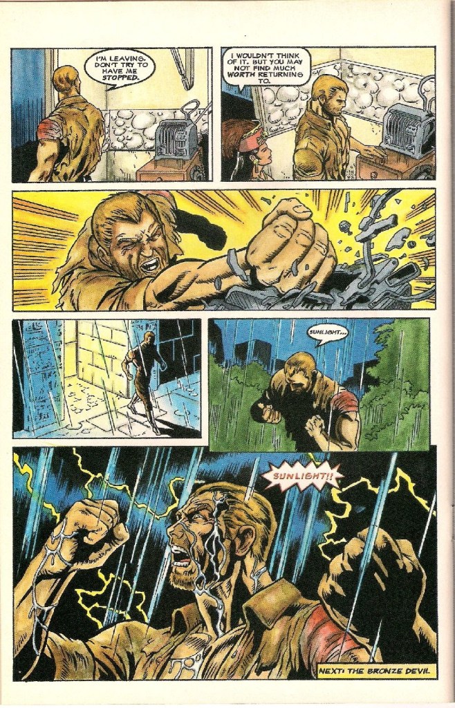 Hints are given about Sunlight’s even more devastating plans to come, and the chapter ends with Doc so distressed he displays rage — Sunlight has delivered some vicious blows, with worse to come.