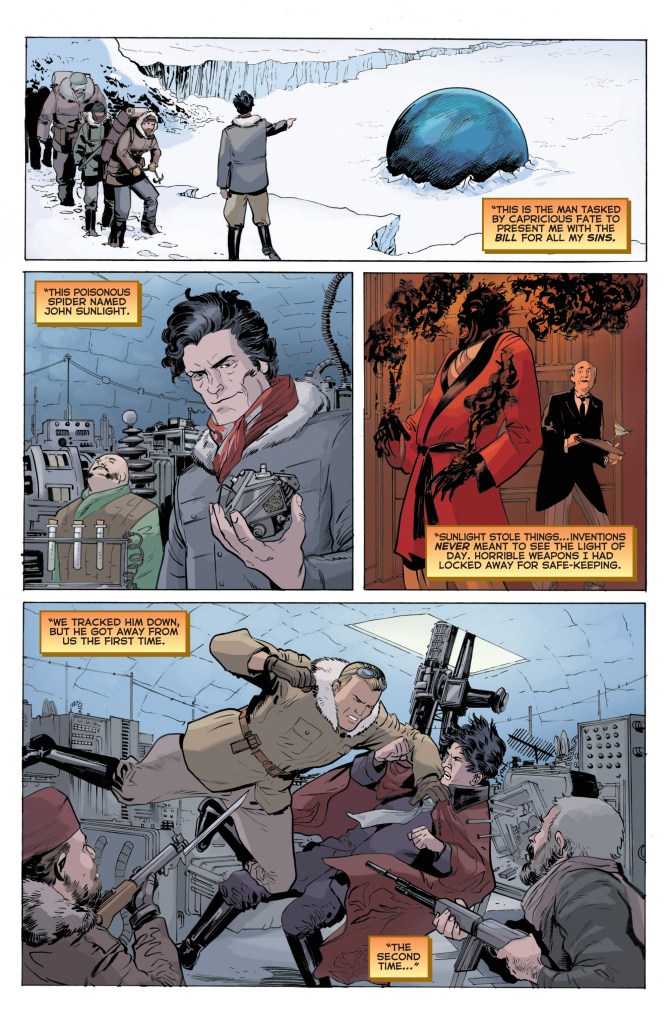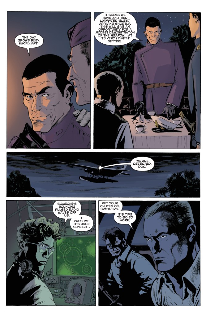 The first two episodes of the story achieved a great deal…they presented a richly-researched period setting, captured characterizations for Doc, Pat, and the five aides that rang true to their original pulp incarnations, and issue #2 ended with the unveiling of the tale’s antagonist, none other than John Sunlight.