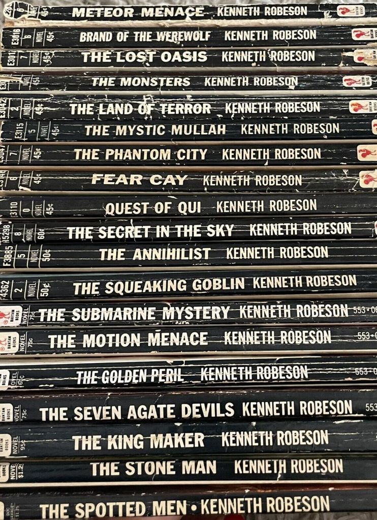 Like, I suspect, most older Doc Savage fans, my one source for the bigger picture of Doc publishing history was the list of Bantam reprints that appeared inside many of the paperbacks. The story titles were magical and alluring, promising so much adventure and excitement…but beyond those it was, in a way, like looking for treasure without a map. I did not own any original pulps at that time, and the internet was far, far away from existing. So beyond the Bantam paperbacks, it was a tapestry filled with mystery.