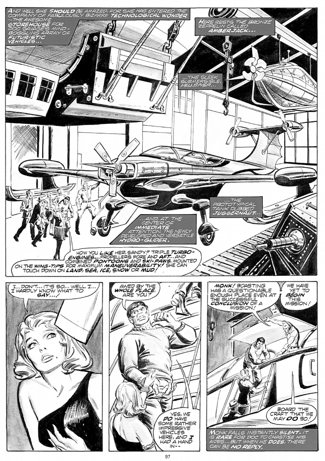 Monk’s penchant for bragging (which he cannot resist any time he is in the presence of a pretty girl), is cut short by Doc, a little more sternly than he was wont to do in the pulps, but it highlighted his serious, modest, and no-nonsense nature.