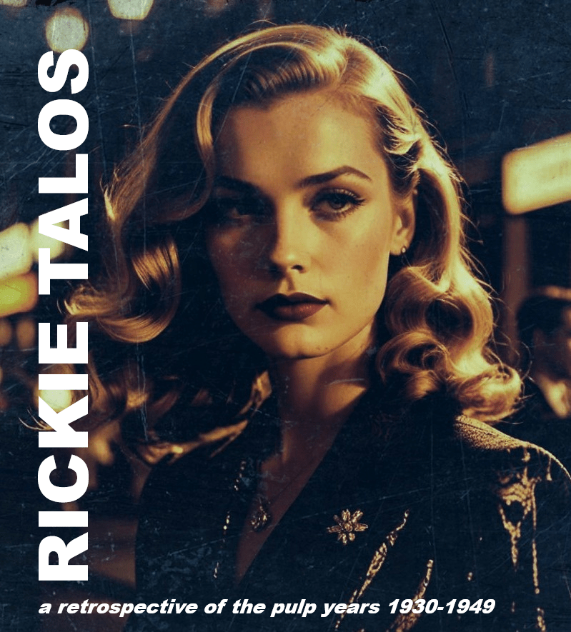 RICKIE TALOS: A RETROSPECTIVE OF THE PULP YEARS 1930-1949: Prestige 8.5″ x 8.5″ hardcover, full color, 40 pages. $24.00 plus shipping. Also available as a PDF download: $5.00