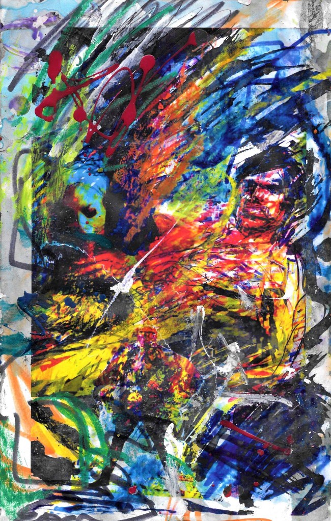 The results of that indulgence in collecting would go far beyond anything I could have envisioned. In Issue #2, I ran headfirst into Jason Robert Bell, a fine artist whose paintings and sculptures have graced galleries from New York to Chicago. In an article called “My Feast Unknown”, Jason described an audacious project he had done: it seemed he loved, above all other books, A Feast Unknown, and artistic dynamo that he was, created hundreds of pictures from the first chapters of the book…with thousands envisioned. He had taken the visceral elements of the story and amped them so high, layered them so deeply, that the story had virtually expanded and exploded with uncontainable energy. He’d received permission from Phil and Bette Farmer to present them on stage, in a 2005 multimedia show at Brooklyn’s Brick Theater, to what I’m sure was a greatly stimulated, if somewhat puzzled audience.