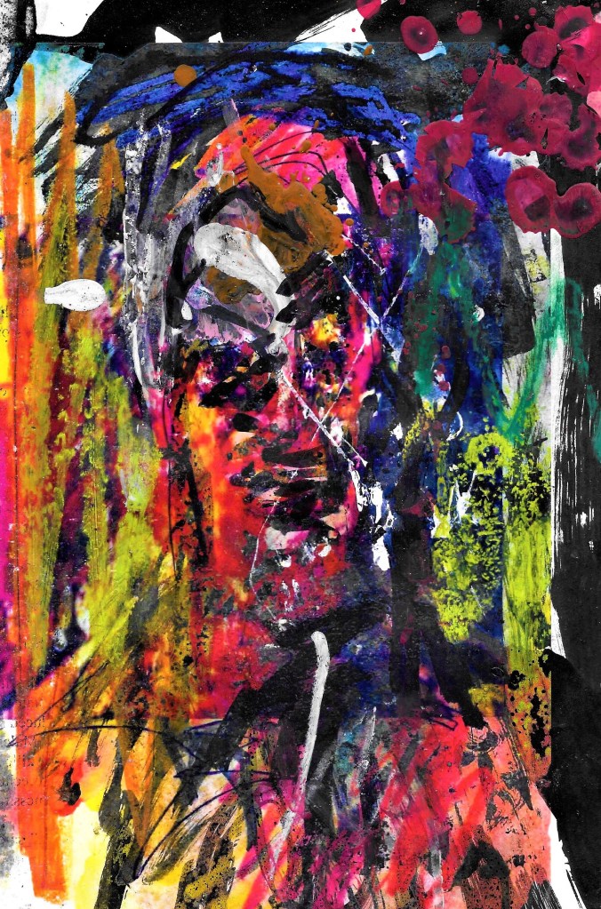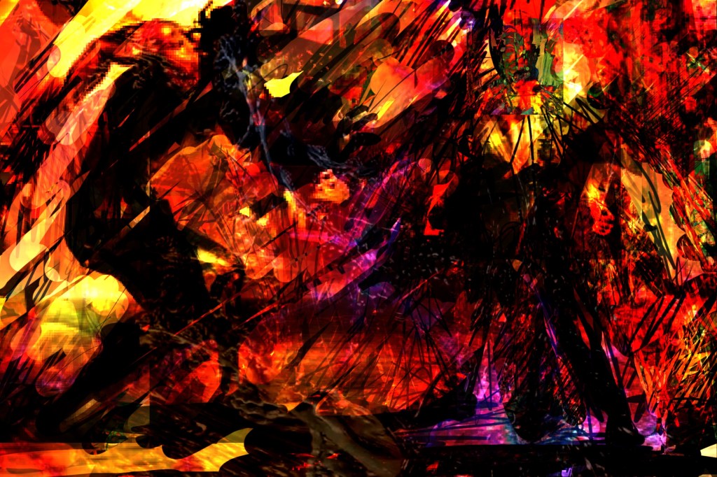 I wasn’t puzzled. I felt like I’d been hit by a truck. Some of the images had been reproduced in the Farmerphile, and a quick search unearthed many more of them online. The project was insane, impossible, outrageous…and magnificent. He had somehow captured a mix of fine art (citing inspirations like Pollock), comic art (artist/authors Jack Kirby and Frank Miller being mentioned), and beyond that, he described working with Feast as a “Gnostic experience”…something I had never thought to hear outside of my own head. His work was not simply surface illustration…it plunged deep into the soul of the concepts in the story; pulp that felt simultaneously like scripture.