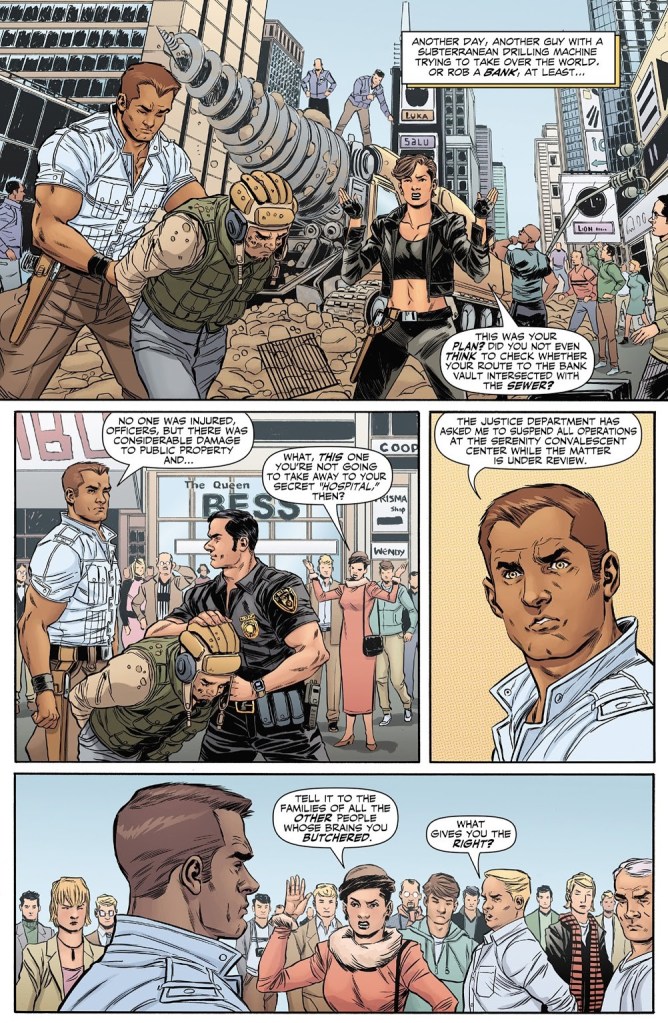 Where other pastiches had been halting, limited in scope – or simply exercises in imitation – Jeff’s vision for a present-day Doc was richly layered, balancing with remarkable poise between respect for the original stories and the fresh energy of a present-day setting. Doc himself was plausibly brought forward in time, aging (his white hair actually providing him with a new level of dignity), but in such a way that he was hale and vigorous. His retirement after 1949 (to the small Central American country of Coronado) was explained, not through laborious exposition, but skillfully woven into a fast-paced action narrative. New, younger aides were introduced, with connections to the past that helped them feel familiar, but also refreshingly characterized with unique qualities of their own.