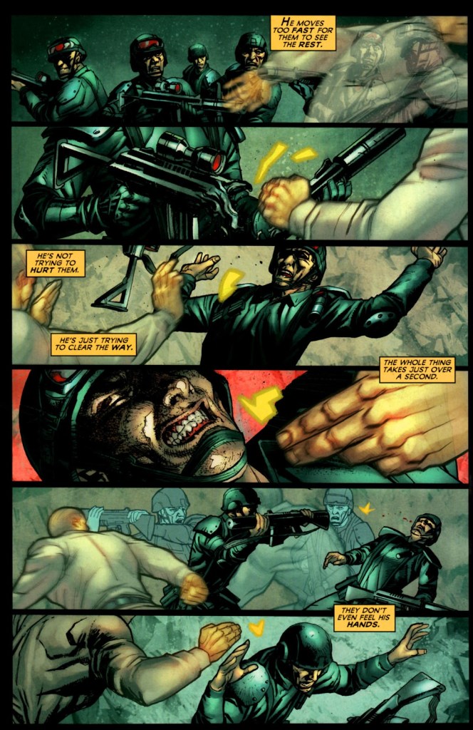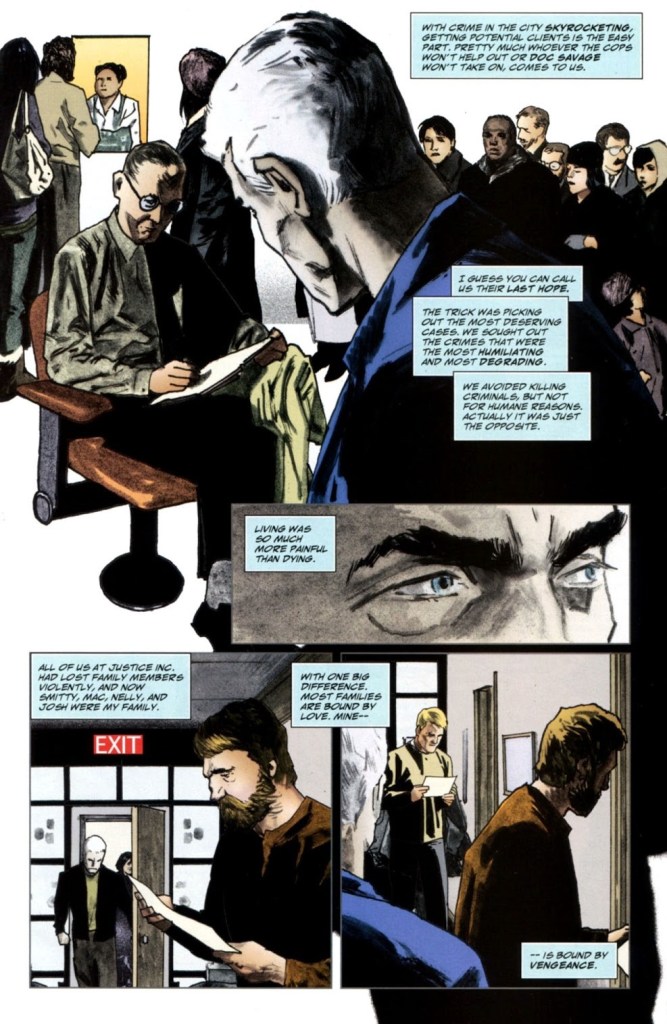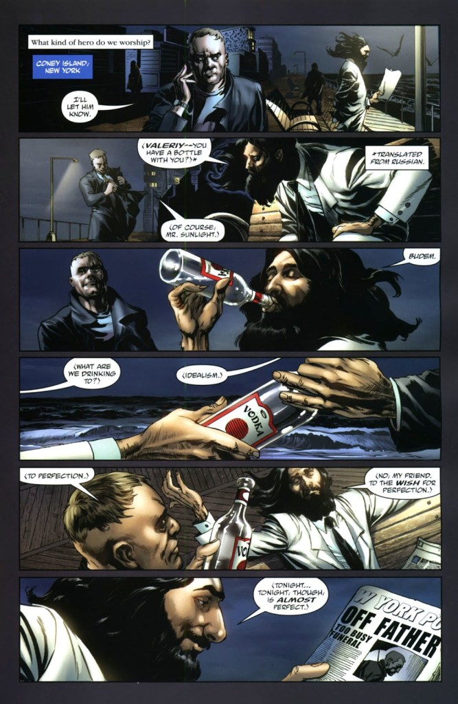 While that certainly made things more coherent, it provided problems of its own. The covers by Ross were brilliant…visually stunning to a degree that rivaled the great Bantam paperback cover artist James Bama. Evely, by contrast, provided somewhat pedestrian visuals. Her artwork across the arc of stories was competent, detailed (at one point I was amazed to see Evely depict the art deco designs of the elevator doors of the Empire State building…and they were absolutely correct. She clearly did her research) and consistent, but almost entirely lacked the dynamic power of Ross’ cover paintings. So after the thrill of the exterior package, the interiors were a distinct step down.