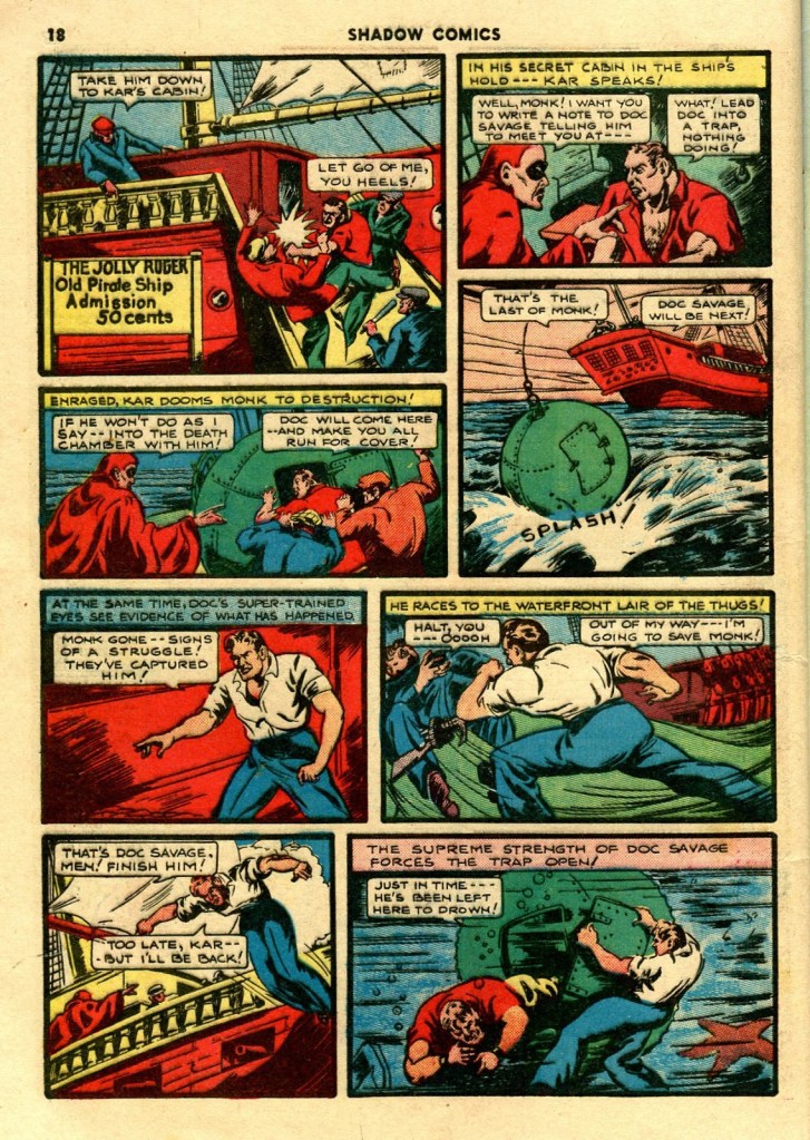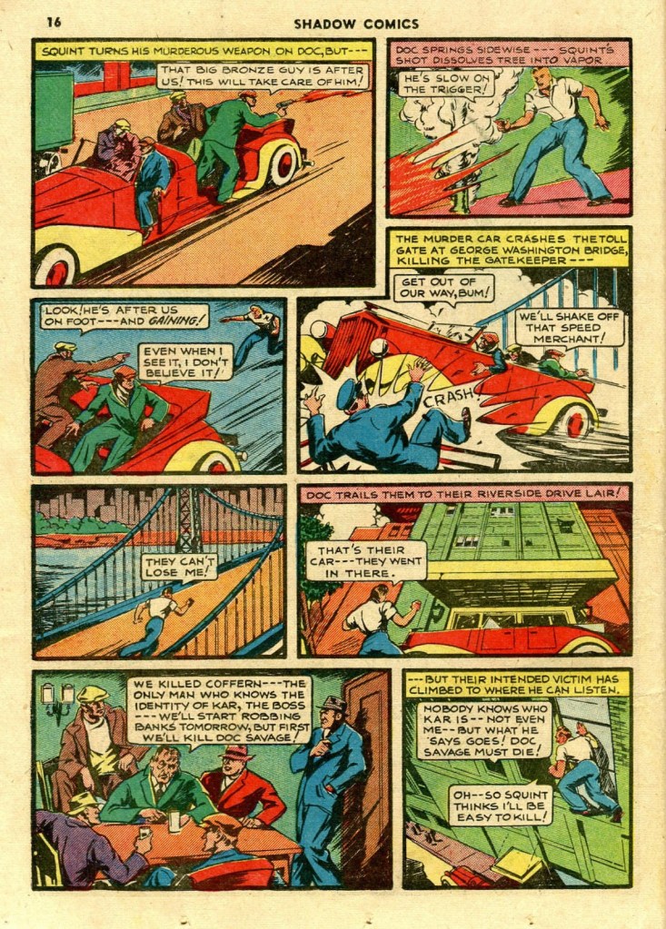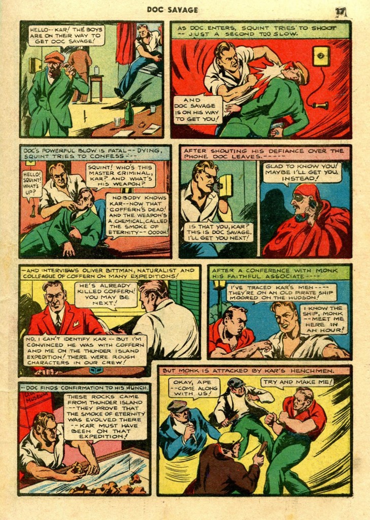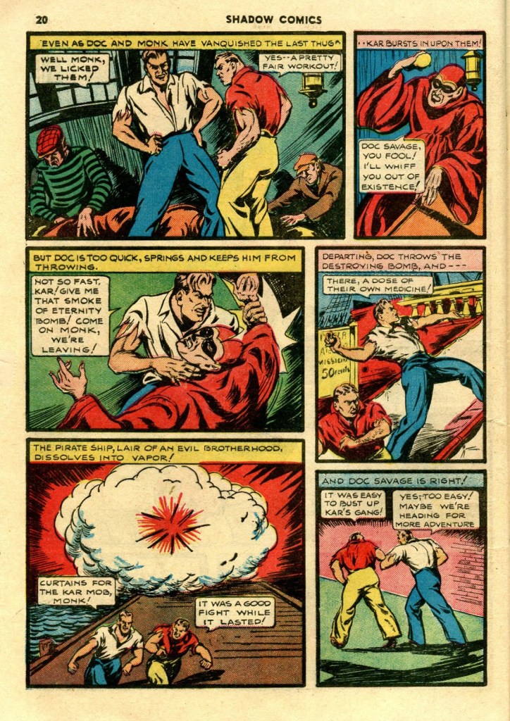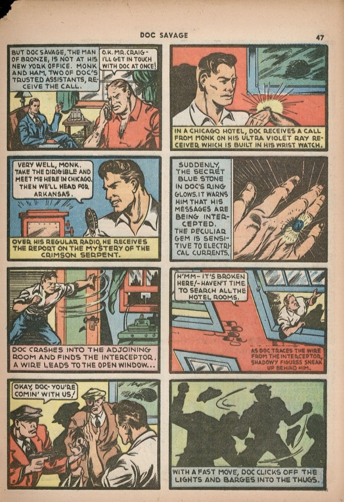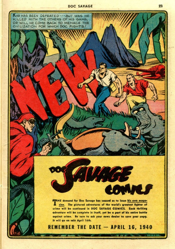 For a single potent satire — and Feast is unquestionably a powerful story — that adds up to “mission accomplished”. Though for me it left a sense of the unfinished in my mind as a reader…I very much wanted to see Caliban explored with a similar depth to that afforded Grandrith in the story. The themes were so compelling, and an “adult Doc Savage” was a remarkable potential means for looking deeper into that mirror of not only Doc, but ourselves.