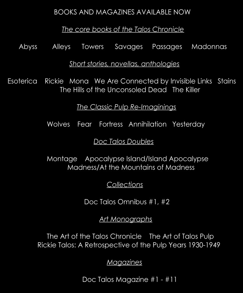 Welcome to the bookstore for Doc Talos publications! The Doc Talos series offers a mature-audience pastiche of the classic pulp hero Doc Savage.
